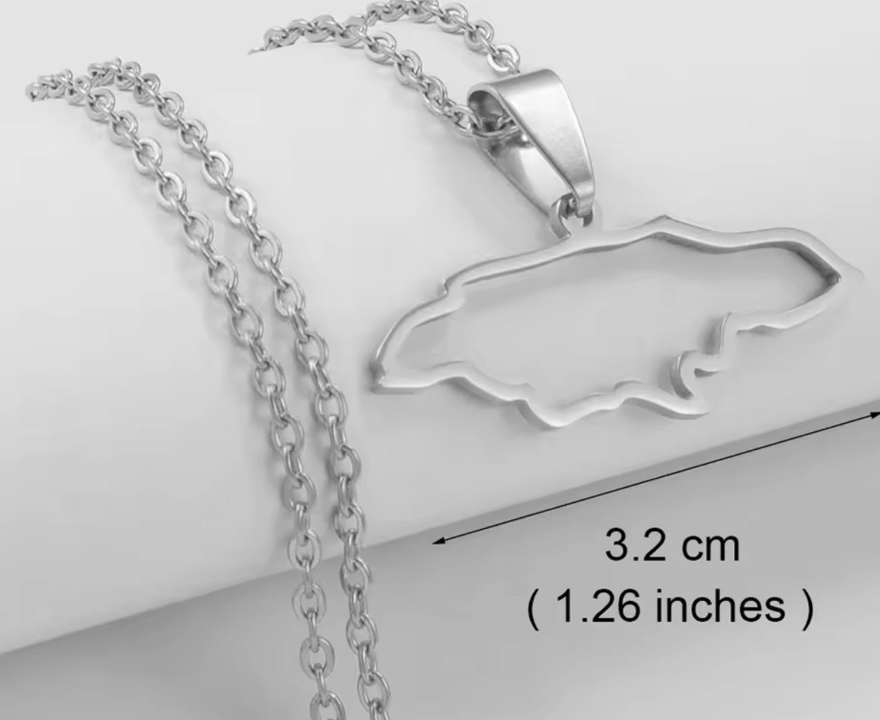 Embrace the essence of Jamaica with our sleek Jamaica Map Outline Necklace. This minimalist pendant features the elegant contour of Jamaica's map, a subtle yet meaningful piece that speaks to your roots and love for the island. Crafted with precision and polished for a smooth finish, this necklace is both lightweight and comfortable to wear all day. Its simple outline design makes it versatile, perfect for layering or as a stand-alone piece.