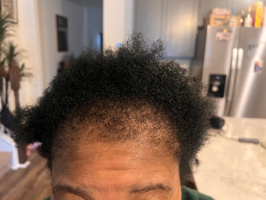 Part your hair in sections and apply a few drops directly to your scalp, focusing on thinning areas like the edges, crown, and nape.