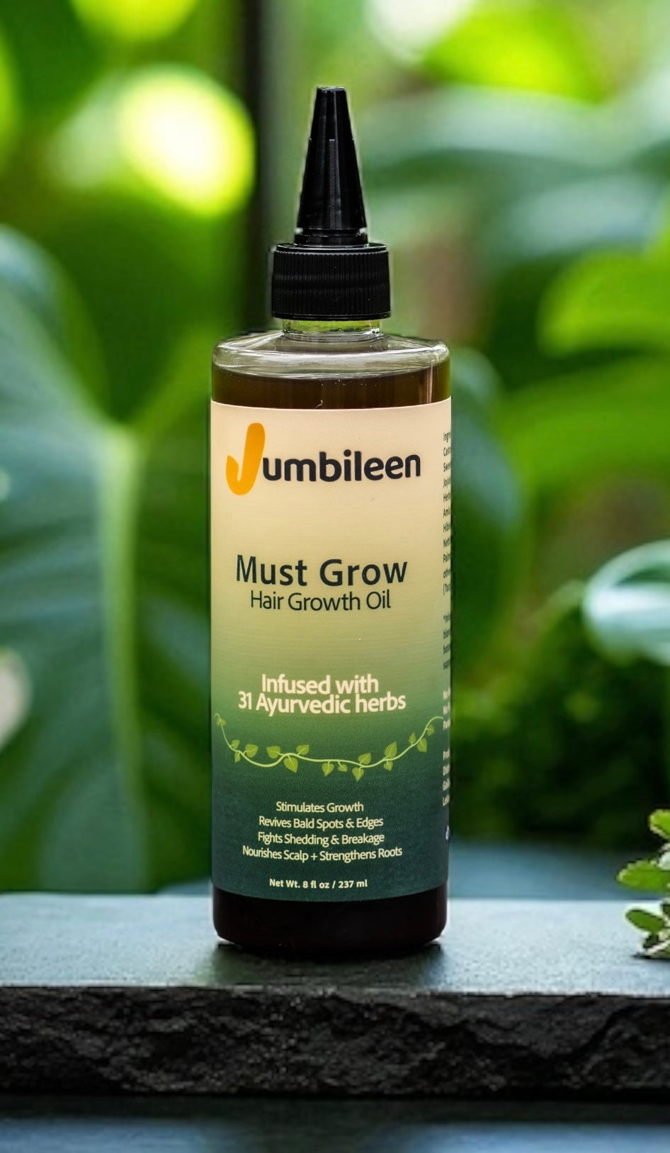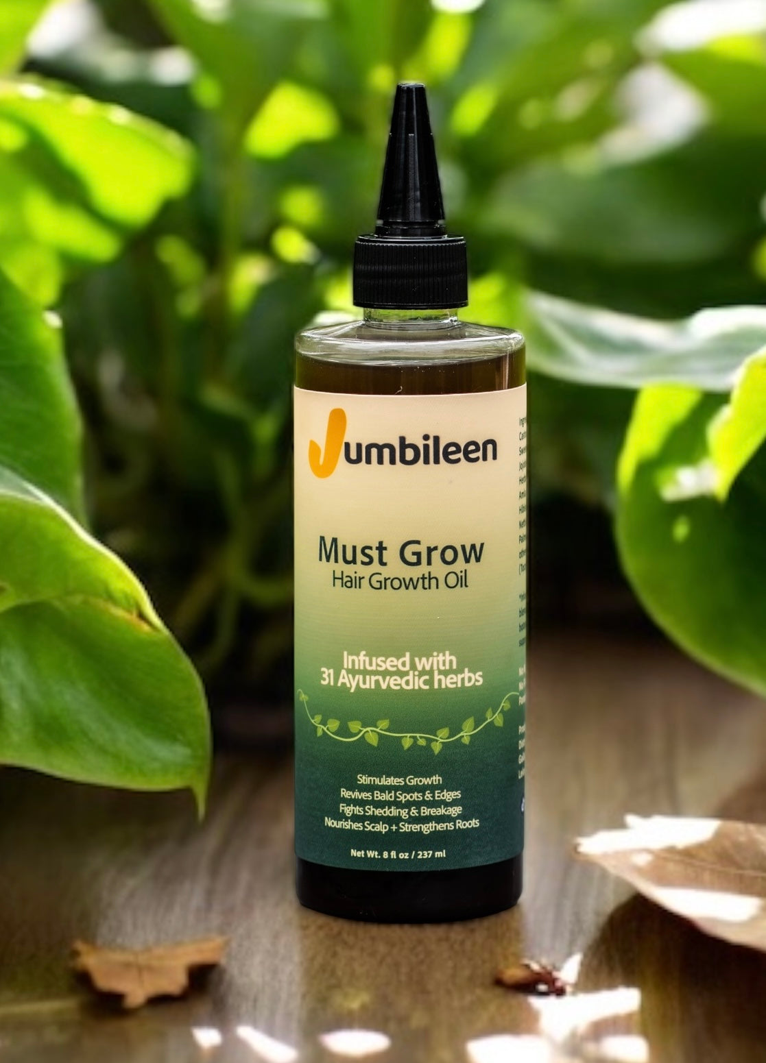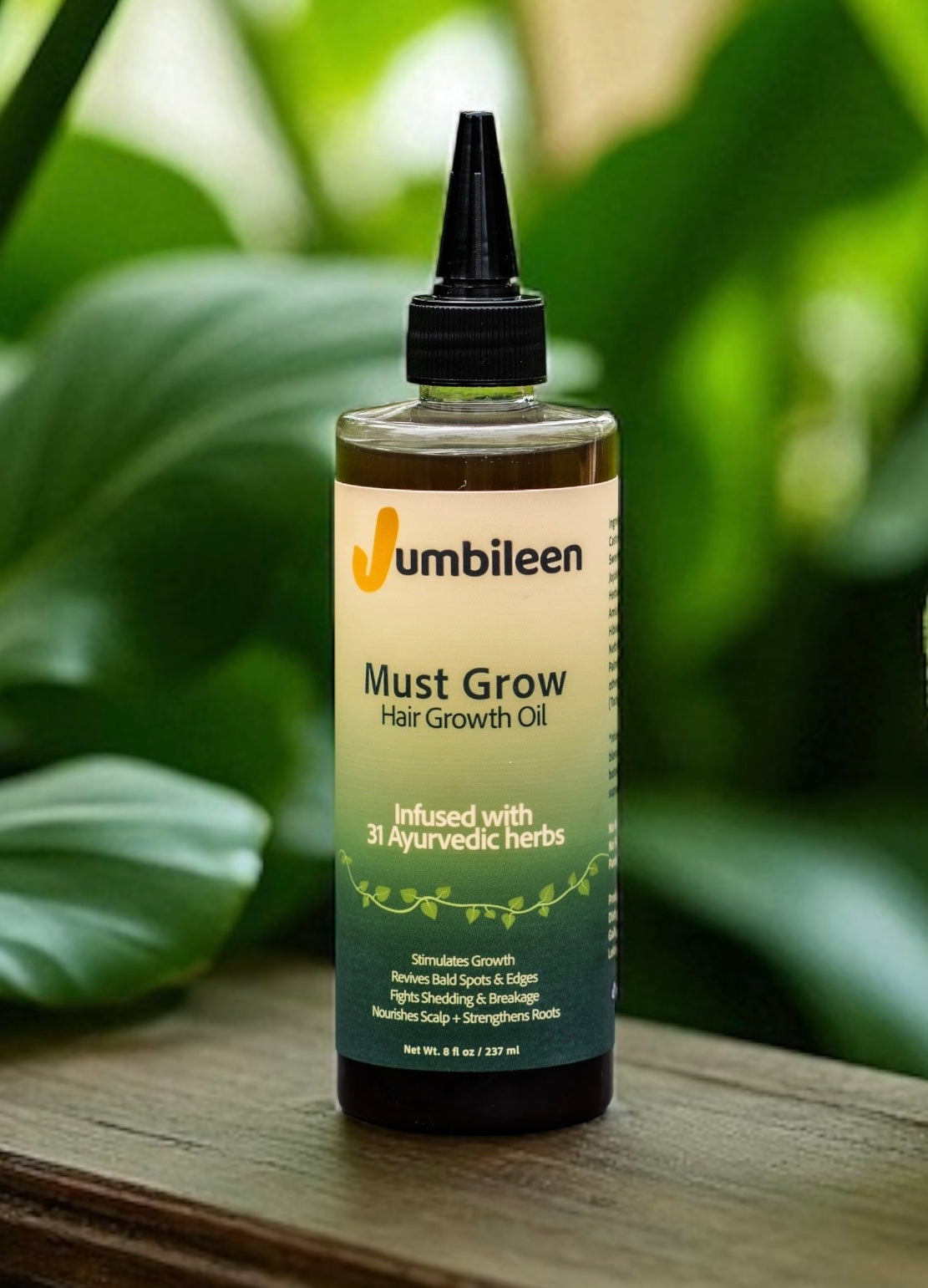 Stronger, thicker, healthier hair starts here. Jumbileen's Must Grow Hair Growth Oil is a potent, nutrient-rich blend of cold-pressed oils and 31 Ayurvedic herbs crafted to deeply nourish the scalp, stimulate growth, and strengthen every strand from root to tip.